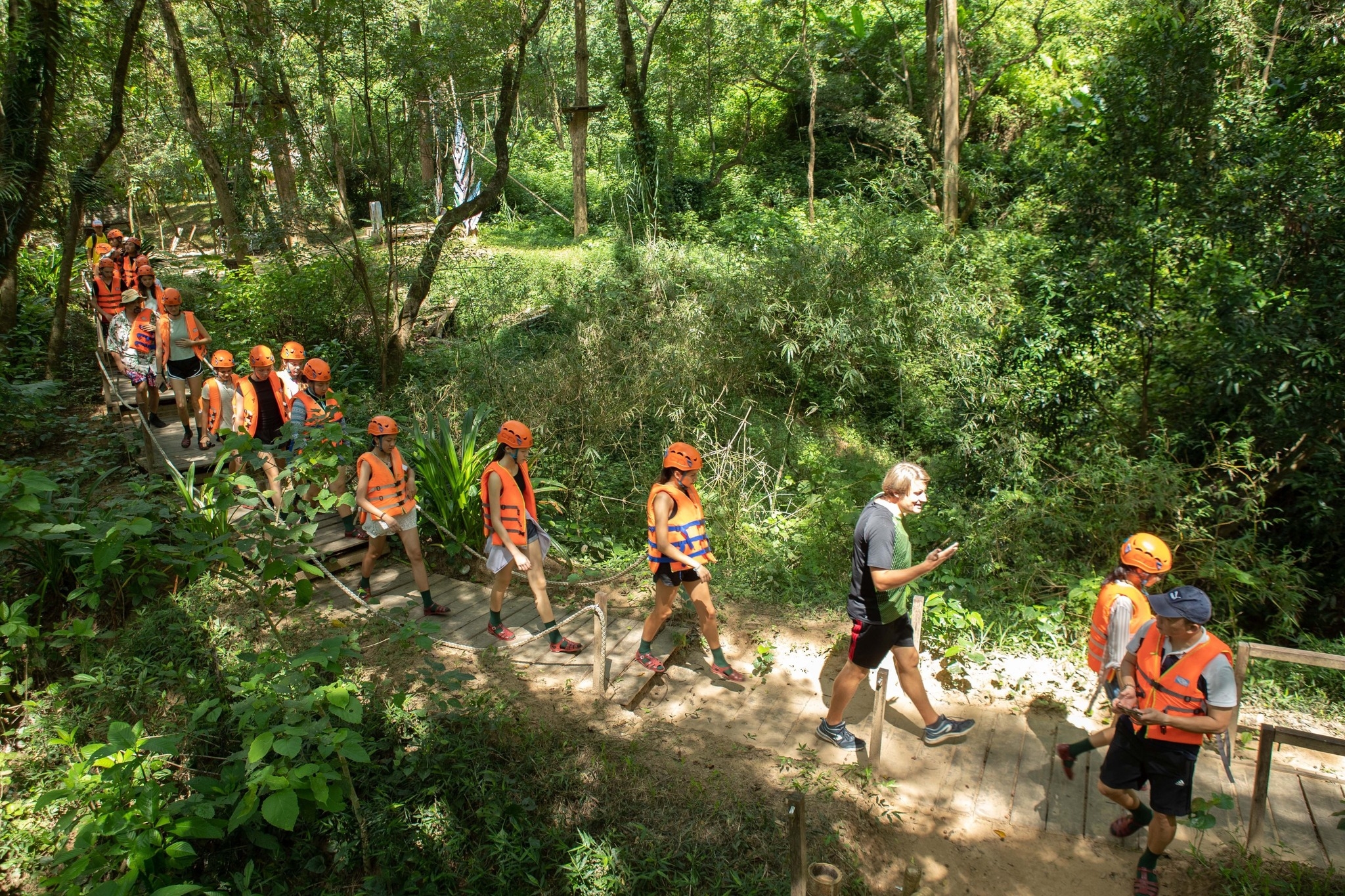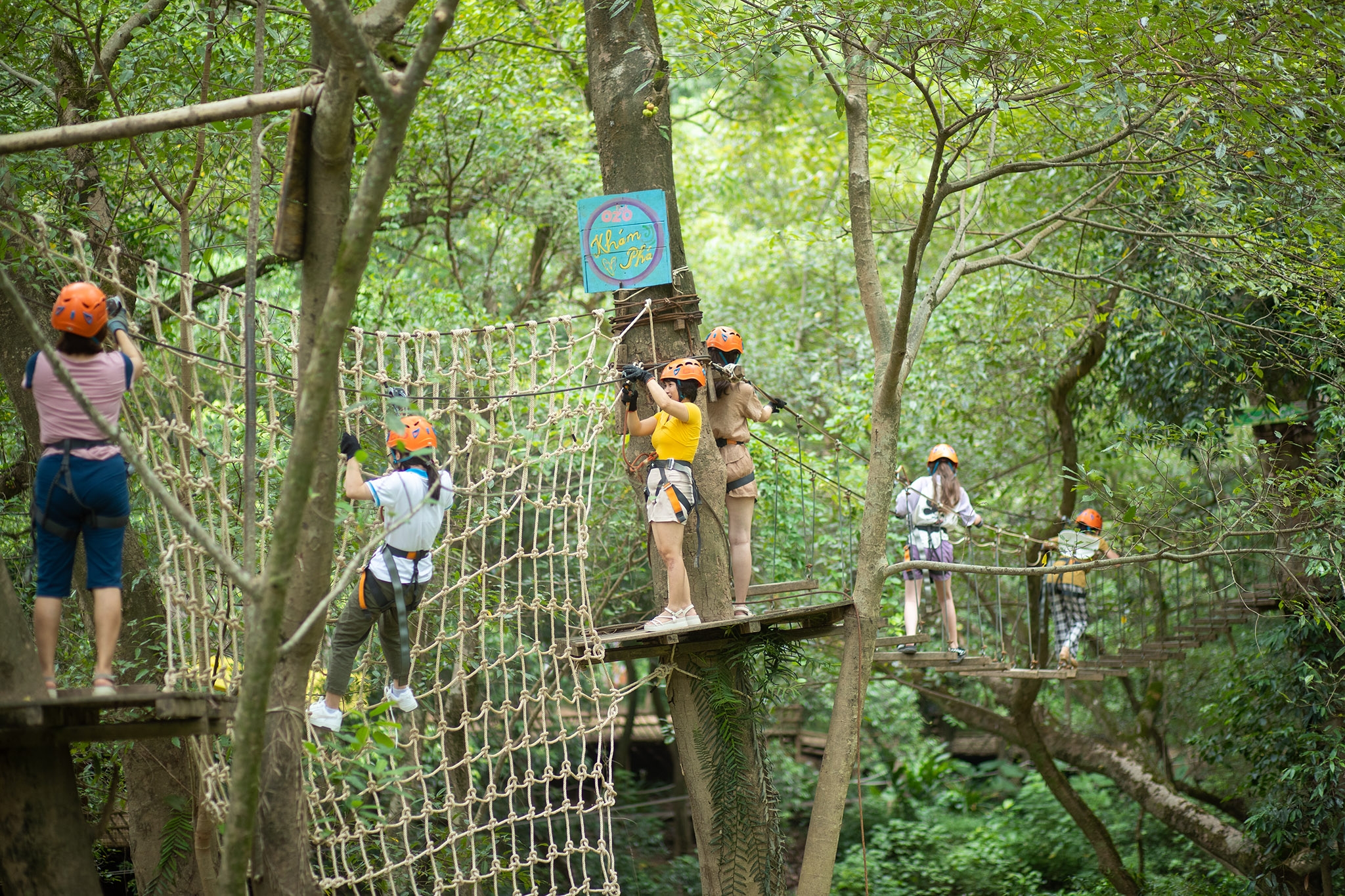 13:00 – 16:00 Tham quan Công viên Ozo trên hệ thống sàn đạo dài 999km; khám phá bức màn thiên nhiên trên những chòi lá sinh thái; thử thách chuỗi trò chơi cảm giác mạnh trên cây cùng các trò chơi dưới nước như chèo Kayak và thuyền Sup.