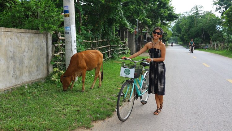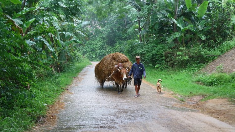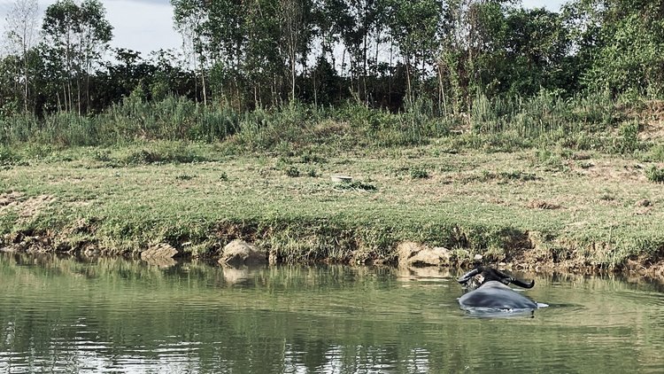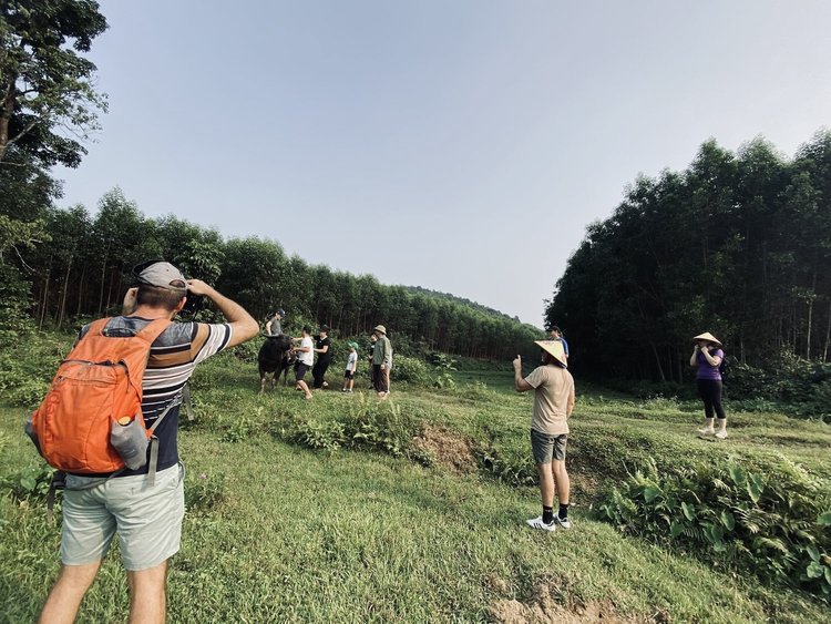 1:45pm: Hit the road. Start cycling to Bong Lai valley which is around 10km away from Phong Nha center. The road ahead is lined with tall, vibrant green bamboo swaying gently in the breeze. On either side, friendly cows and buffaloes graze leisurely, adding a sense of tranquility to the picturesque scenery.