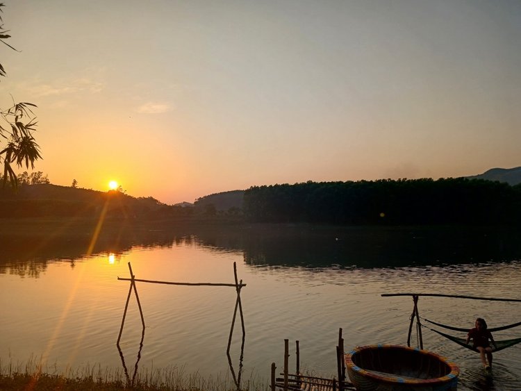 Amazing sunset at Phong Nha Funky Beach and different water games