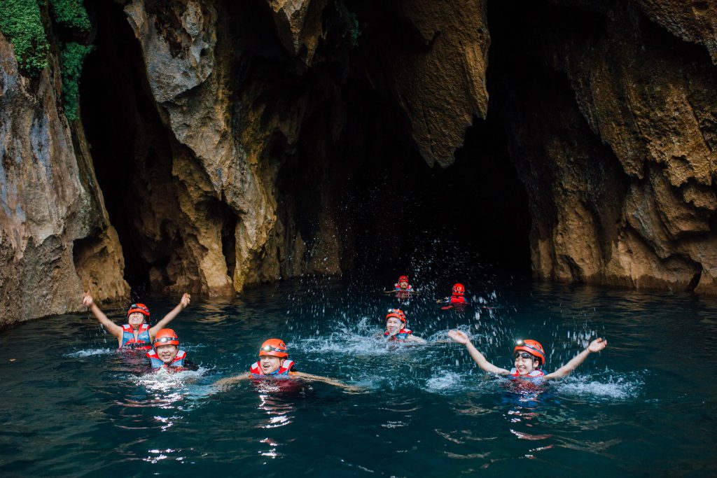 - Bơi và lặn khám phá 1km bên trong hang E.