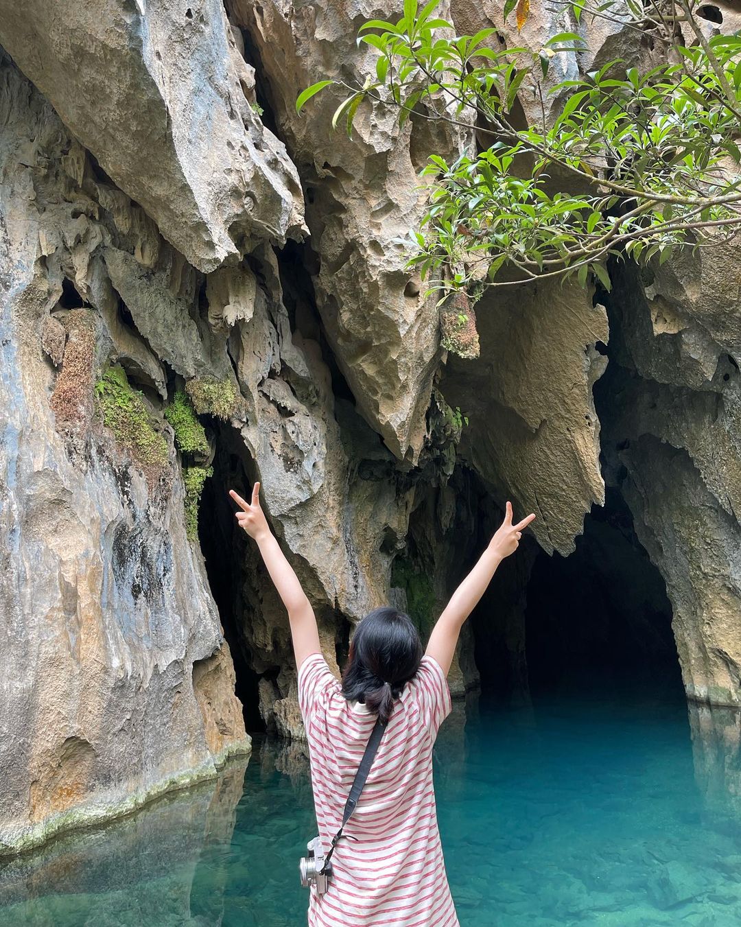 - Khám phá hang Vàng với quãng đường 1km, đây là hang động khô với nhiều điều kỳ vĩ như hệ thống thạch nhũ phủ rêu trên cửa hang, thạch nhũ kim sa, thạch nhũ ruộng bậc thang và đặc biệt là thạch nhũ vàng 24k.